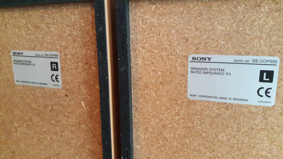 Prodajem zvučnike Sony SS-CCP300, 2 x 50 W RMS/ 6 ohm, testirani, zvuk odličan/duboki bas, dimenzije 275x175x265 mm, težina 3 kg/1 kom. Stanje 10/10, što je vidljivo i na slikama.