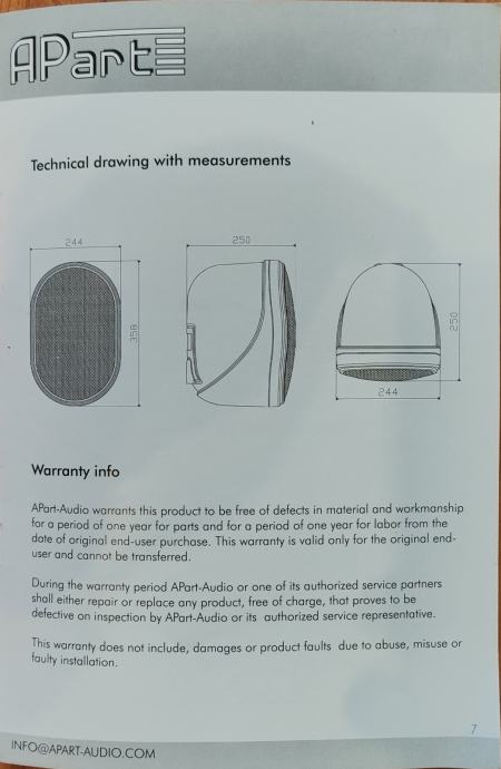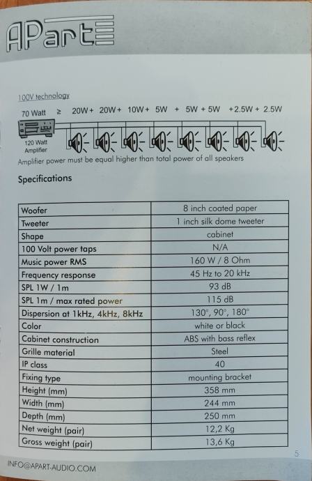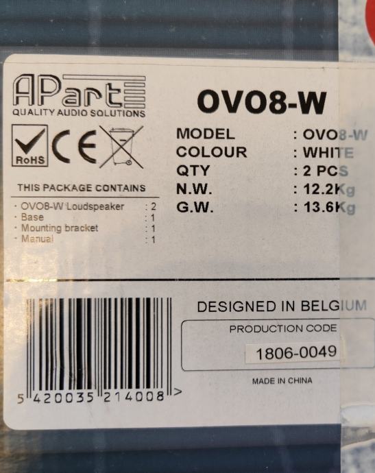 Nov i ne korišten par zvučnika Apart Audio OVO8