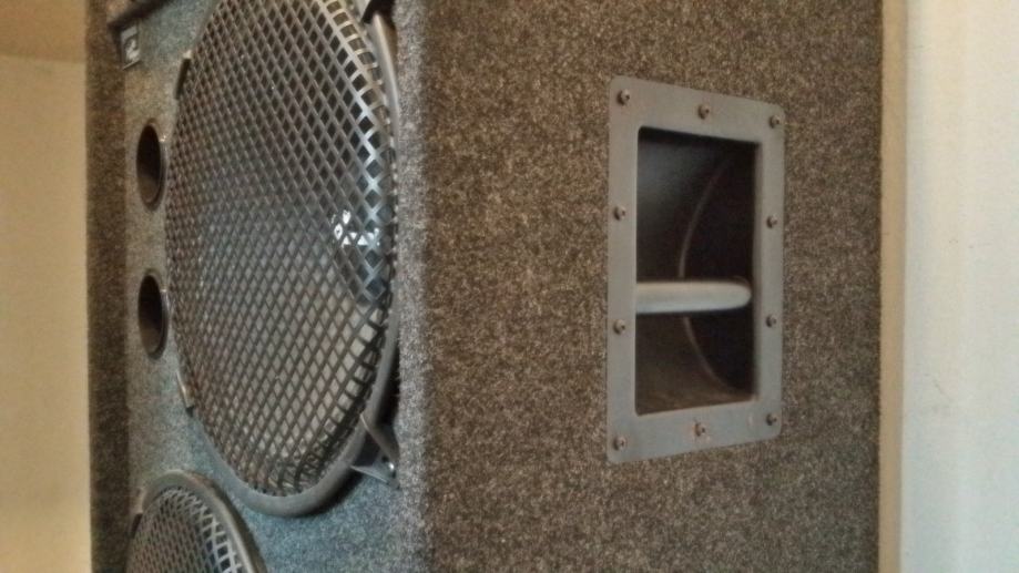 2x15 inch bas 1xsrednjetonski zvučnik i 5x visokotonski zvučnik po svakoj kutiji. Dimenzije 112x60x40 cm , cca. Uz zvučnike idu i kotačići koji se mogu skidati. Uz nadoplatu Vam mogu ponuditi adekvatna pojačala i tonski miksere. Nazovite zbog detalja ili različitih ponuda. Cijena je za par zvučnika.