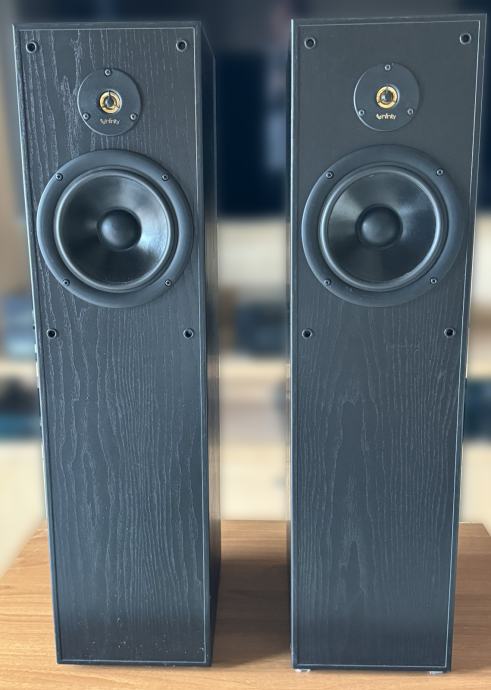 Dobro uščuvani 2-way stojeći bas-refleks zvučnici Infinity Reference 31 Mk II s obnovljenim ovjesom, neoštećene maske, malo jedva vidljivih ogrebotina...
