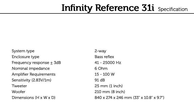 Infinity Reference 31 Mk II bas-refleks zvučnici