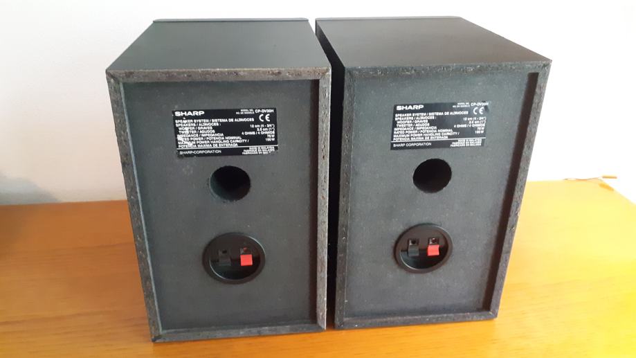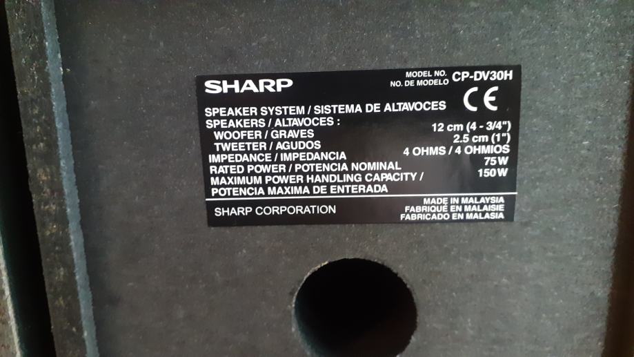 Prodajem zvučnike Sharp 2x75 W / 4 ohm, ispravni, testirani, zvuk odličan, dimenzije 265x160x210 mm, težina 3.3 kg/1 kom. Stanje 10/10, što je vidljivo i na slikama.