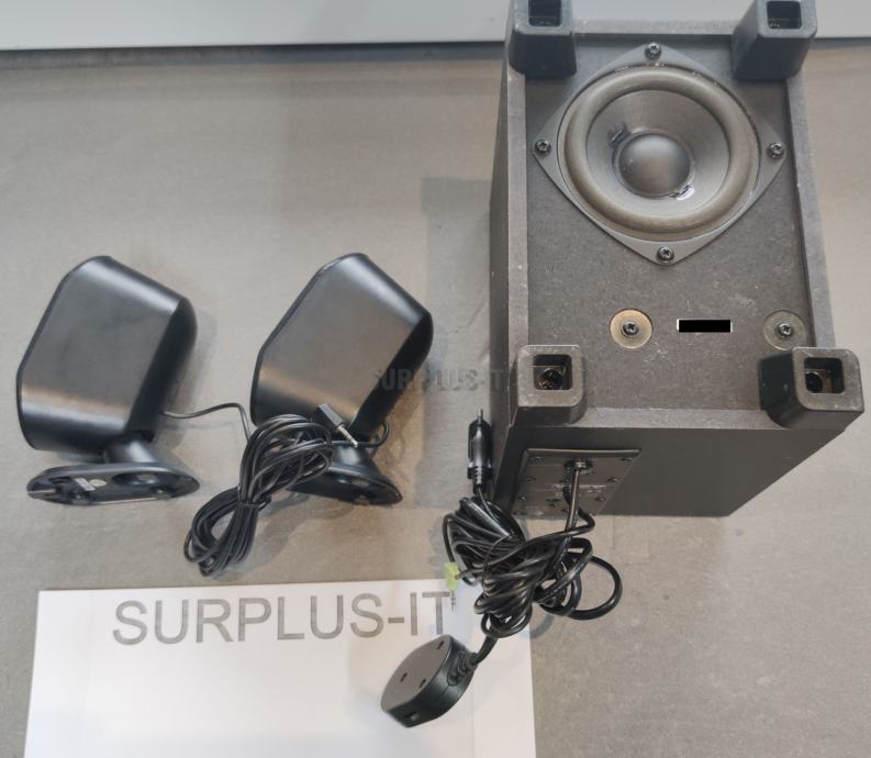 Dimenzije: Sateliti: 15,2 x 6,3 x 7,6 cm, Subwoofer: 21,5 cm x 15,2 cm x 22,8 cm