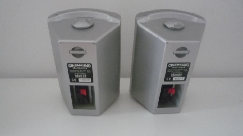 zvucnici INDIANA LINE - KAO NOVI , za unutarnju ili vanjsku upotrebu ,sa snagom od 2 x 40 w ,RMS ,8 OMA, odlicno se cuju ,mogu se stavit i na zid , MADE IN ITALY , boja SILVER , jako kvalitetni , RADE BEZ GRESKE ,