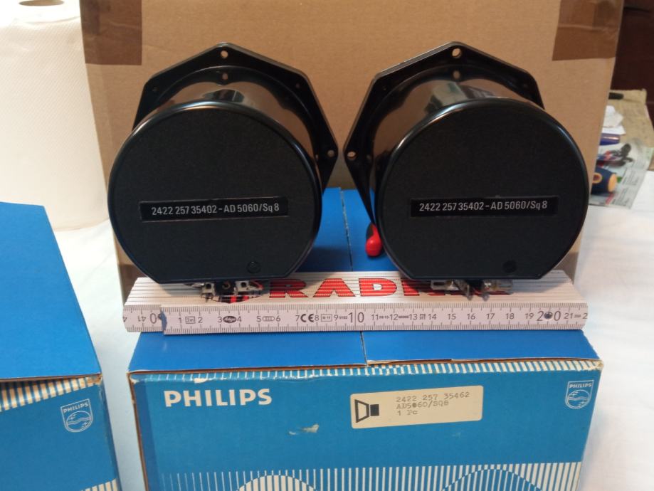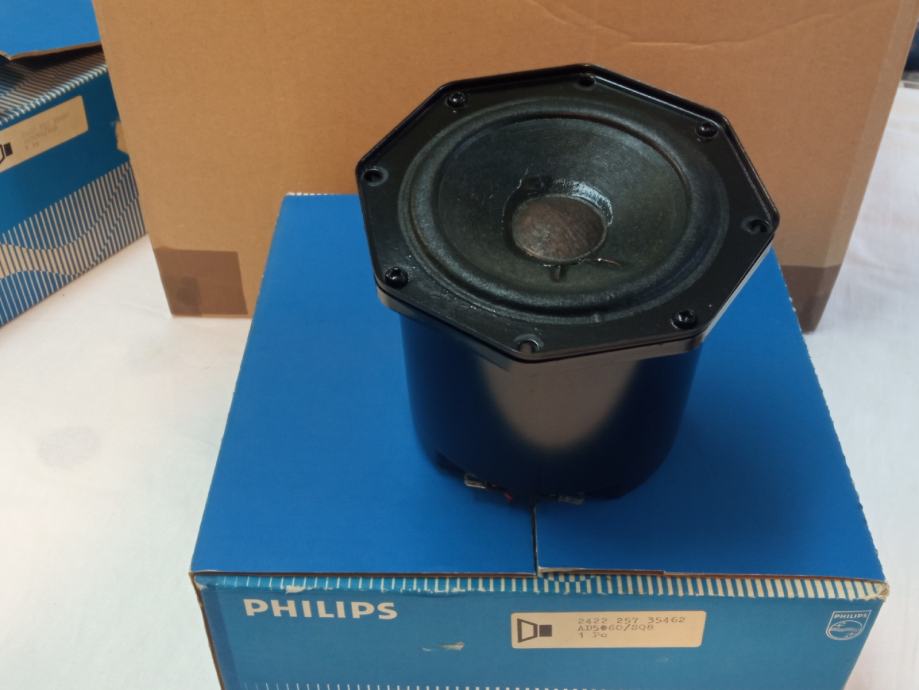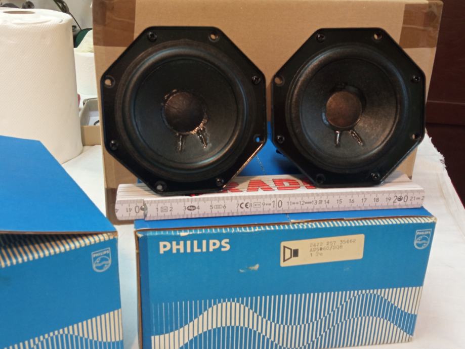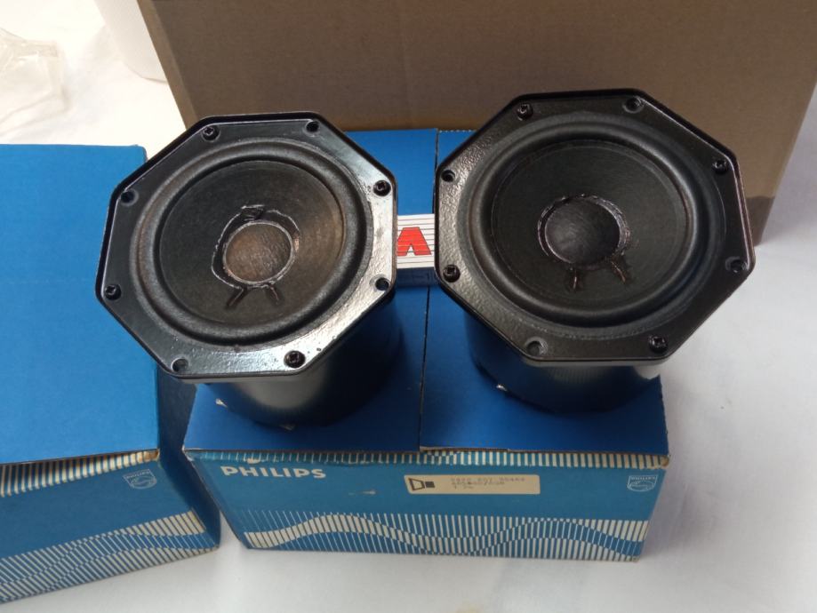 Zvučnici Philips AD 5060 Sqq8 (8 ohma), 2 kom, jedan posve ispravan, drugi svira tiše i prekida, promjer zvučnika je 12 cm, visina je 10.5 cm, promjer kućišta 10.3 cm