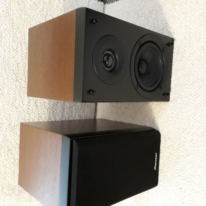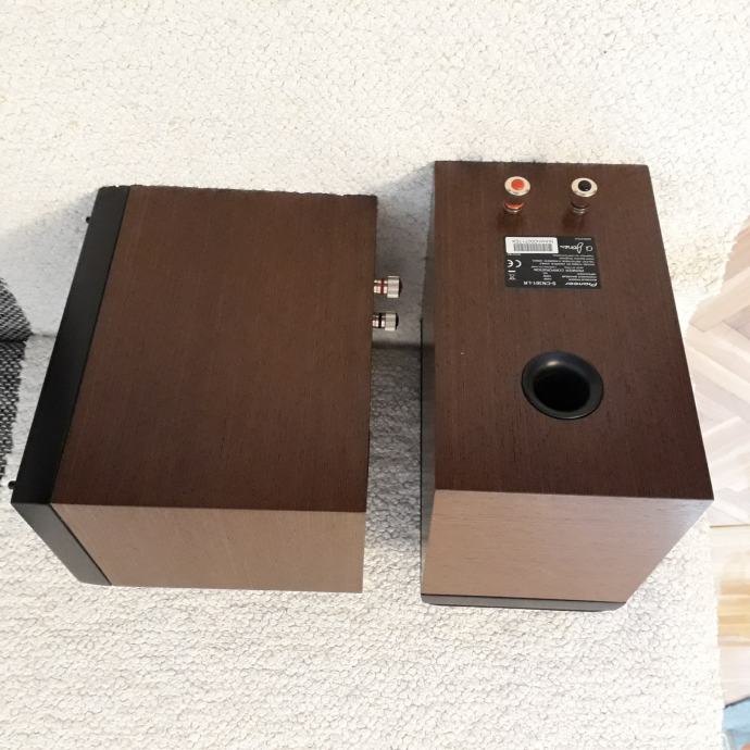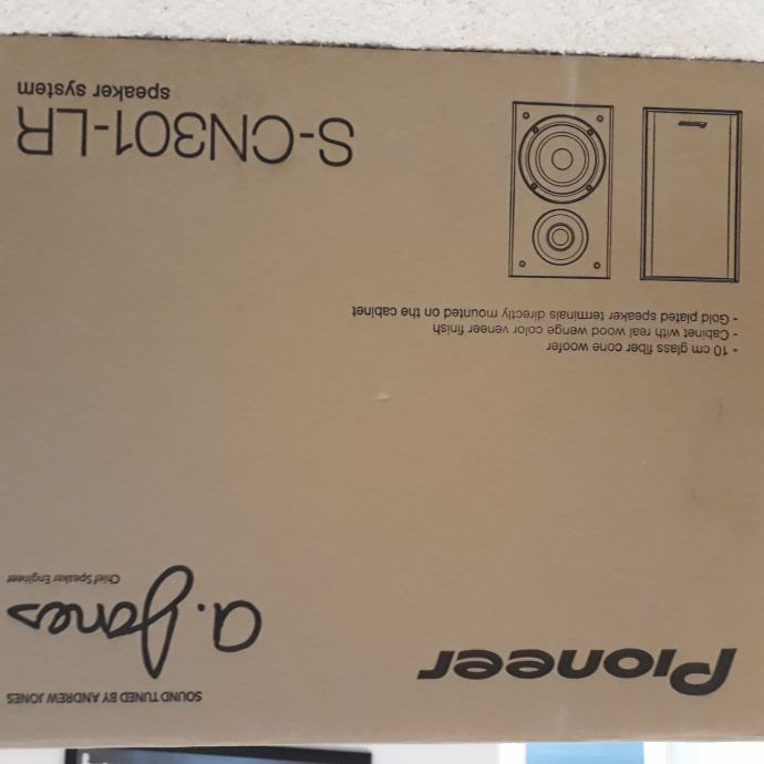 Prodaju se NOVI neraspakirani zvučnici Pioneer S-CN301-LR. Zvučnici imaju odličan zvuk i izgledaju jako lijepo. Specifikacije su: 6 Ohm, RMS Output power 100 W, Dimenzije: 230mm x 220mm x 135mm. Za ostale specifikacije pogledajte na NET-u. To su bookshelf zvučnici, ali isto tako imaju tvornički napravljene rupe na dnu koje služe za montiranje na podne stalke koje Pioneer proizvodi baš za te zvučnike, a mogu se, naravno, montirati i na neke druge podne ili zidne nosače. Za znalce treba istaknuti da je zvučnike dizajnirao i "uštimao" Andrew Jones, te je njegov potpis na kutiji.