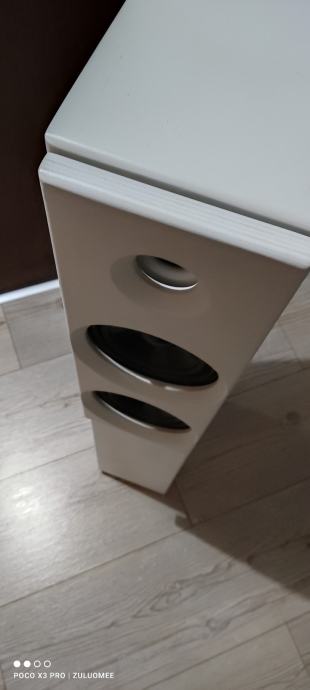 Dvosistemski zvučnici. Basreflex kutija podešena na 42Hz. Materijal kutije Špera 18mm debljine.