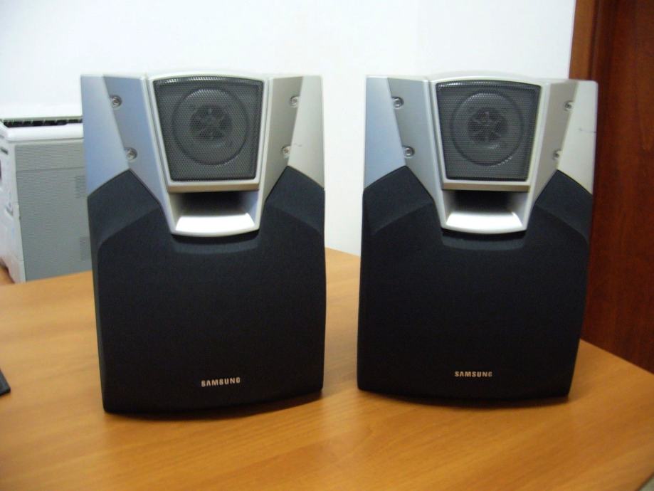 Dvije kvalitetne masivne HI-FI zvučne kutije vrhunske brand marke Samsung, izuzetno lijepog izgleda, kao i ekstra čistog kristalnog zvuka i ugodne dubine, za sladokusce i audiofile, moguće ih je priključiti na bilo koju HiFi muzičku liniju ili pojačalo, a pogodne su za puštanje glazbe u ugostiteljskim objektima ili za kućnu upotrebu ako neko voli snažan i kvalitetan zvuk u stanu, podrumu, garaži ili dvorištu. Cijena za oba zvučnika zajedno je samo 49 EUR.