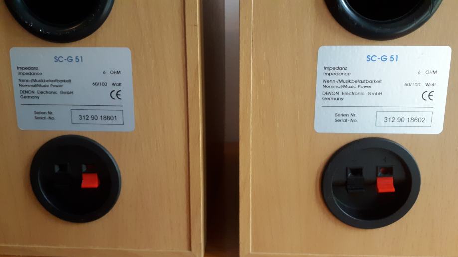 Prodajem zvučnike Denon SC-G51, snaga 2x60W/6 ohm, testirani, zvuk odličan, duboki bas, dimenzije 24.5x17x29 cm, težina 4.5 kg/kom. Stanje vidljivo na slikama.