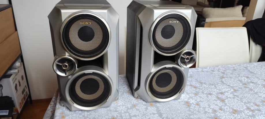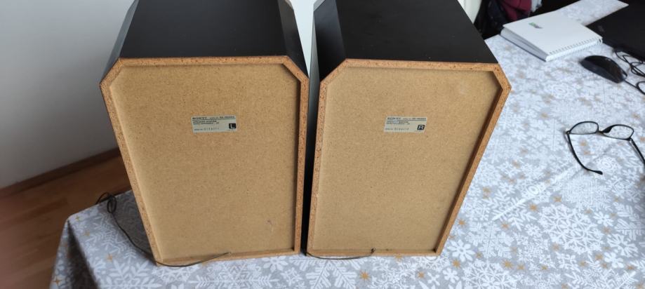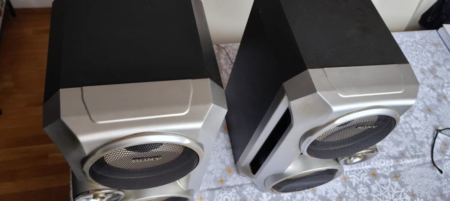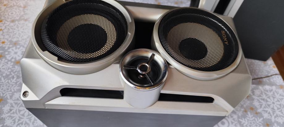Odlični Sony trosistemski zvučnici, kompletno drvene kutije osim prednjih ukrasnih maski