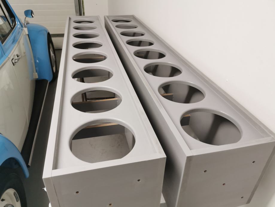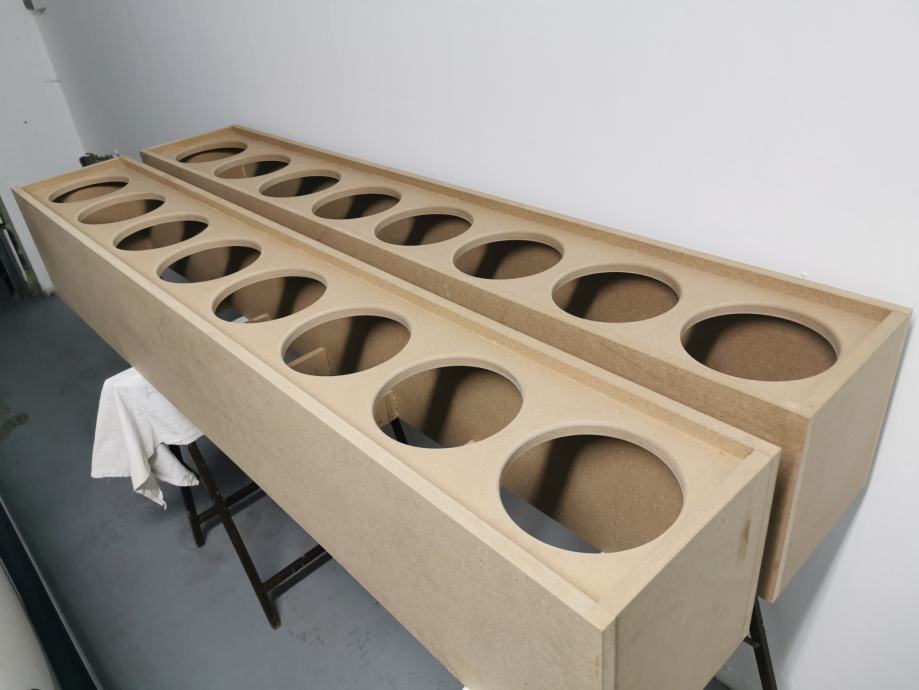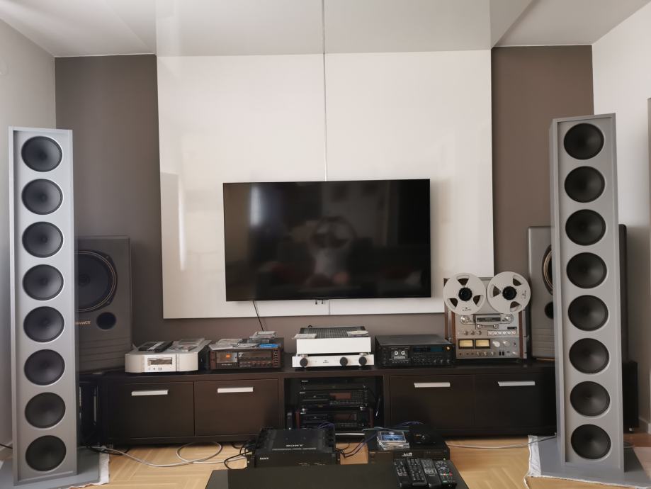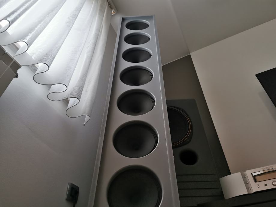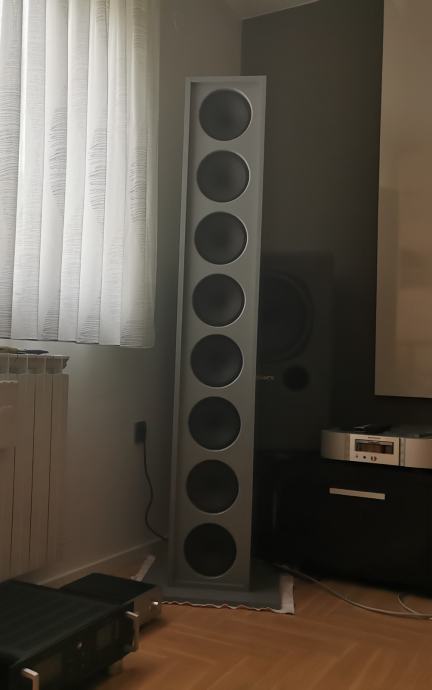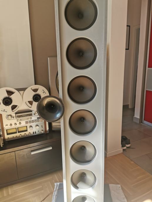 Novi i gotovo nekorišteni stupovi s 8 komada širokopojasnih Telefunken zvučnika po stupu. Impedancija po stupu 8 Ohma. Izuzetno transparentan zvuk. Kutije otvorenog tipa.