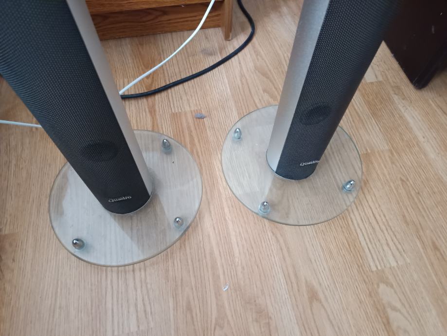 zvucnici su doslovno kao novi,sviraju poprilicno jako za takav tip zvucnika,nemaju nikakvih ostecenja ,kablovi idu odozdo u njih,tako da se mogu sakriti....zainteresirani zvati na broj 0957791778