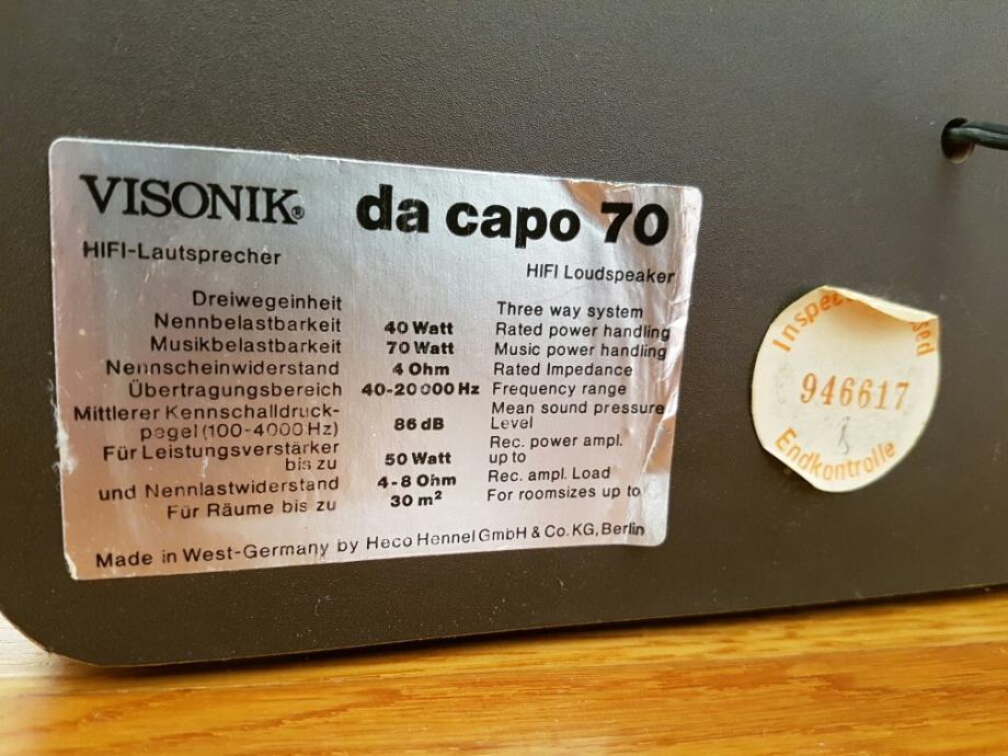 Prodajem zvučnike Visonik da capo 70.