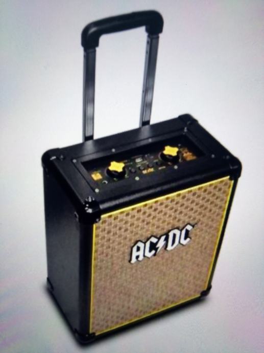 AC-DC B.T.zvučnik i pojačalo za gitaru TNT-3max snaga 200 w,utor za USB memoriju,utor za gitaru,bluetooth,punjiva baterija sa punjačem.kotačići i teleskopska ručka.Dimenzije 210x355x440 mm i težina 6,8 kg.Cijena nije fiksna.