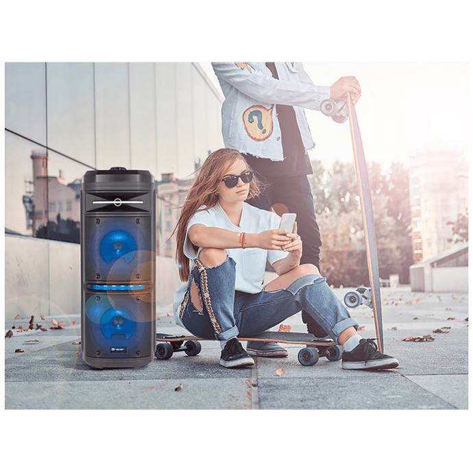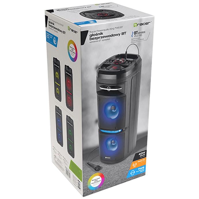 Tracer Poweraudio King savršen je izbor za svaku zabavu. U čvrstom kućištu nalaze se dva 6.5" zvučnika snage RMS 40 W, što jamči čist, ali snažan zvuk. Osim toga, zahvaljujući bežičnoj tehnologiji, možete uživati u omiljenoj glazbi u svakoj situaciji. Tracer zvučnici kompatibilni su s bilo kojim Bluetooth uređajem – sve što trebate za reprodukciju je pametni telefon ili tablet. Ne morate brinuti o vezama jer Bluetooth 5.0 pruža stabilnu vezu unutar radijusa od 10 m. S True Wireless Stereo (TWS) možete jednostavno povezati dva zvučnika putem pametnog telefona, stvarajući nevjerojatan skup audio uređaja koji će vam pomoći da započnete zabavu!
