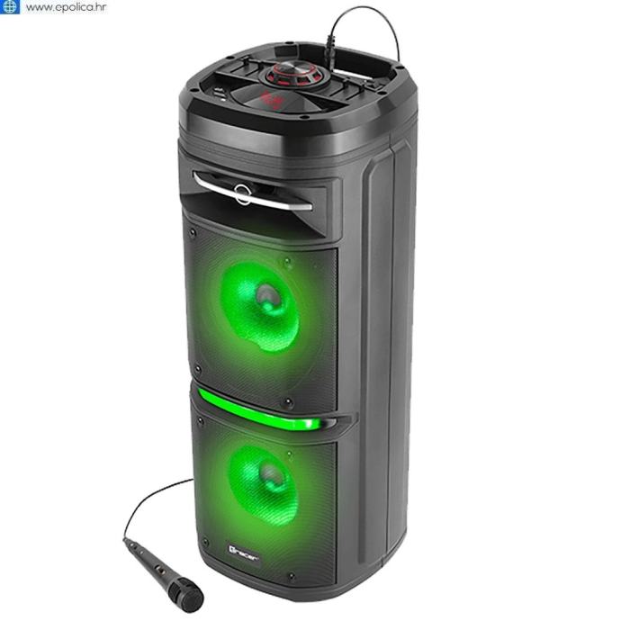 Bežični zvučnik sa daljinskim upravljačem, Bluetooth 5.0, 40 W RMS, microSD, USB, FM radio , mikrofon, višebojno LED osvjetljenje, napajanje 220-240 / 50 Hz, ugrađena punjiva baterija, vrijeme rada do 10 h