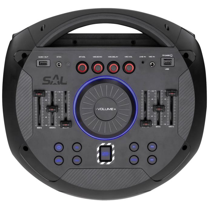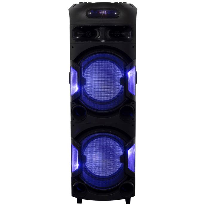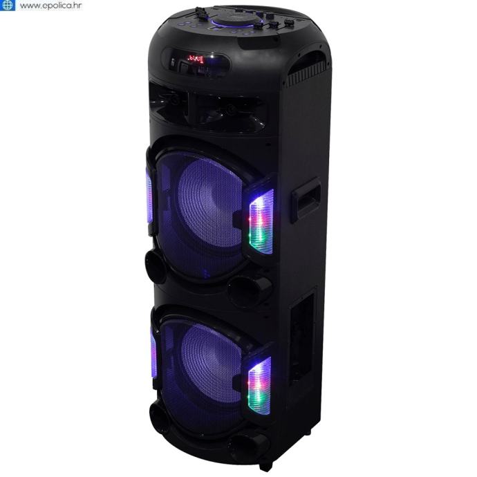 Prenosivi multimedijalni zvučnik sa daljinskim upravljačem, zvučnici 2-way bass reflex 2 x 30 cm subwofer i visokotonac, snaga 150 W, Bluetooth bežična veza, MP3 player, reprodukcija sa USB-a ili SD memorijske kartice, WAW snimanje na USB ili SD memorijske kartice ( MIC, GUITAR ), FM radio s automatskom pretragom, 6-pojasni grafički EQ, 5 vrsta EQ glazbeni stilova, Mega Bass, KARAOKE funkcija, žični audio ulazi MIC, GUITAR, LINE IN, namjenska USB itičnica za punjenje mobitela, ugrađen punjač baterije, izuzetno dugo vrijeme rada, do 24 sata, sa jednim punjenjem, napajanje daljinskog upravljača 2 x AAA 1.5 V baterije ( nisu uključene u pakiranje ), kotačići i ručke za lakše prenošenje, dimenzije 440 x 1200 x 420 mm, težina 21,3 kg