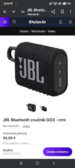 Potpuno novi,zapakiran, nekorišten, crni Bluetooth zvučnik JBL