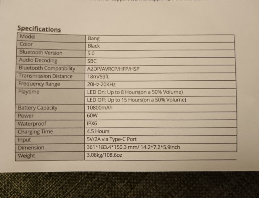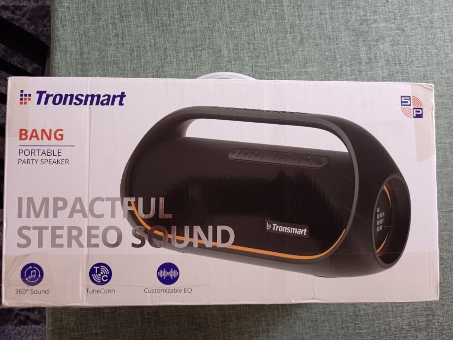 BT zvučnik 60 W, čita USB, TF card, light show, NFC ugrađen, 10000 mAh baterija može puniti mobitel. APP na mobitelu kao daljinski, AUX.Zvučnik je vrlo malo korišten. Skoro nov.