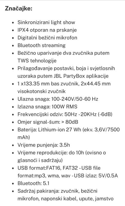 Jbl jedan od najboljih zvucnika , ima ugrađenu bateriju za dugotrajno sviranje bez struje
